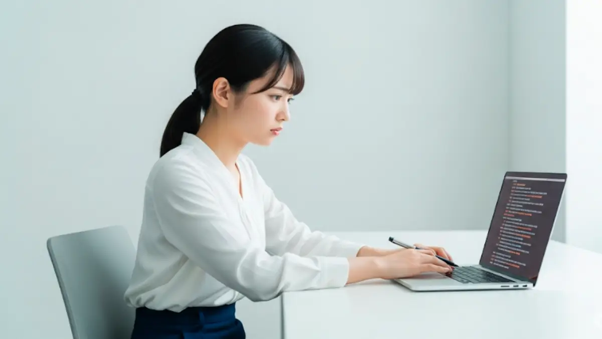 Macで予測変換の設定に悩む女性会社員のリアルな様子